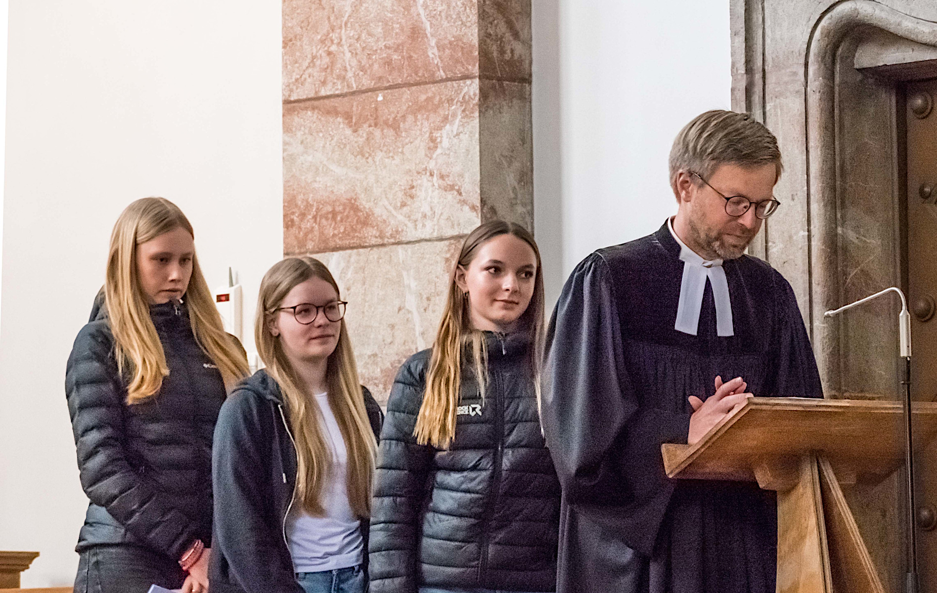 Nach einer sympathischen, namentlichen Vorstellung vor der Gemeinde übernahmen die Jugendlichen in kleineren und größeren Gruppen die vorbereiteten Aufgaben, angefangen von der Begrüßung über die Lesung bis zum Abschlusssegen. Das Thema des Gottesdienstes lautete „der Durchzug durch das Schilfmeer“. Dazu hatten sich alle intensiv und sehr persönlich Gedanken gemacht und dadurch die Gemeinde mit hineingenommen.