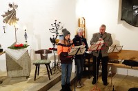 Musik macht die Herzen weit, kann Seelen öffnen und für Worte, Gedanken empfangsbereit machen. Dazu wurde man zuerst von den Kirchenglocken, dann mit einer schönen Weise des Klarinetten-Trios und schließlich durch Pfarrer Gerstner herzlich willkommen geheißen. Die Rothen Dirndln, konzentriert und mit viel Gespür an der Zither begleitet von Thomas Angerer, erzählten in ihren Liedern vom Weihnachtsgeschehen, damals in Bethlehem; und der wunderbar warme Alt, dem sich die beiden anderen schönen Stimmen harmonisch hinzufügten, erreichten die Menschen mit der uralten Bibel-Botschaft der Hoffnung. Pfarrer Gerstner und Prädikant Rolf Bechtel lasen „inwendige“ Geschichten zum Nachdenken, Anregen und Besinnen, die vom weichen Klang des Klarinetten-Trios von Sophia Erben, Eva Fegg und Stefan Hollrieder jeweils ein- und übergeleitet wurden.